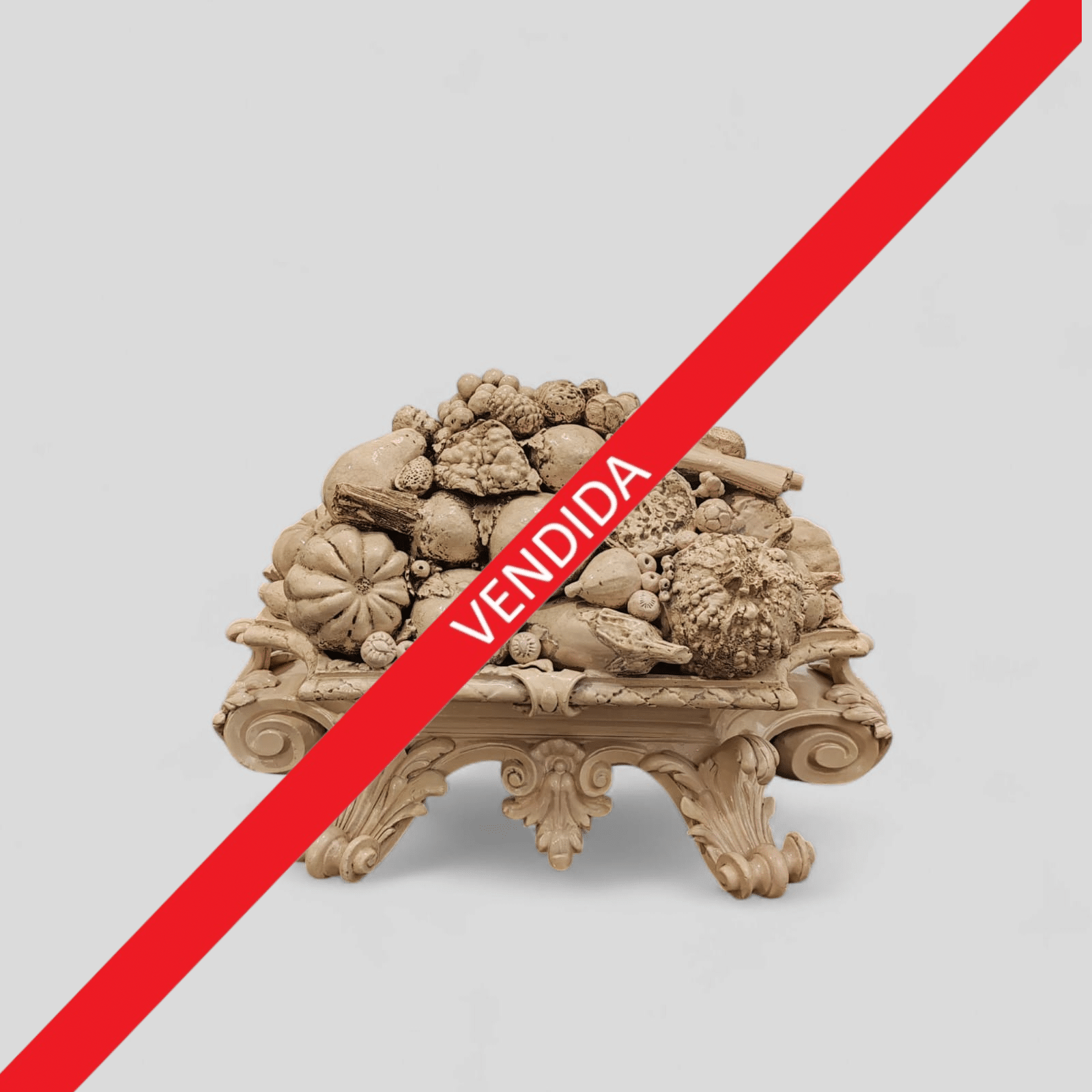 De estilo barroco, el recipiente imita una frutera de plata de época Louis XIV.