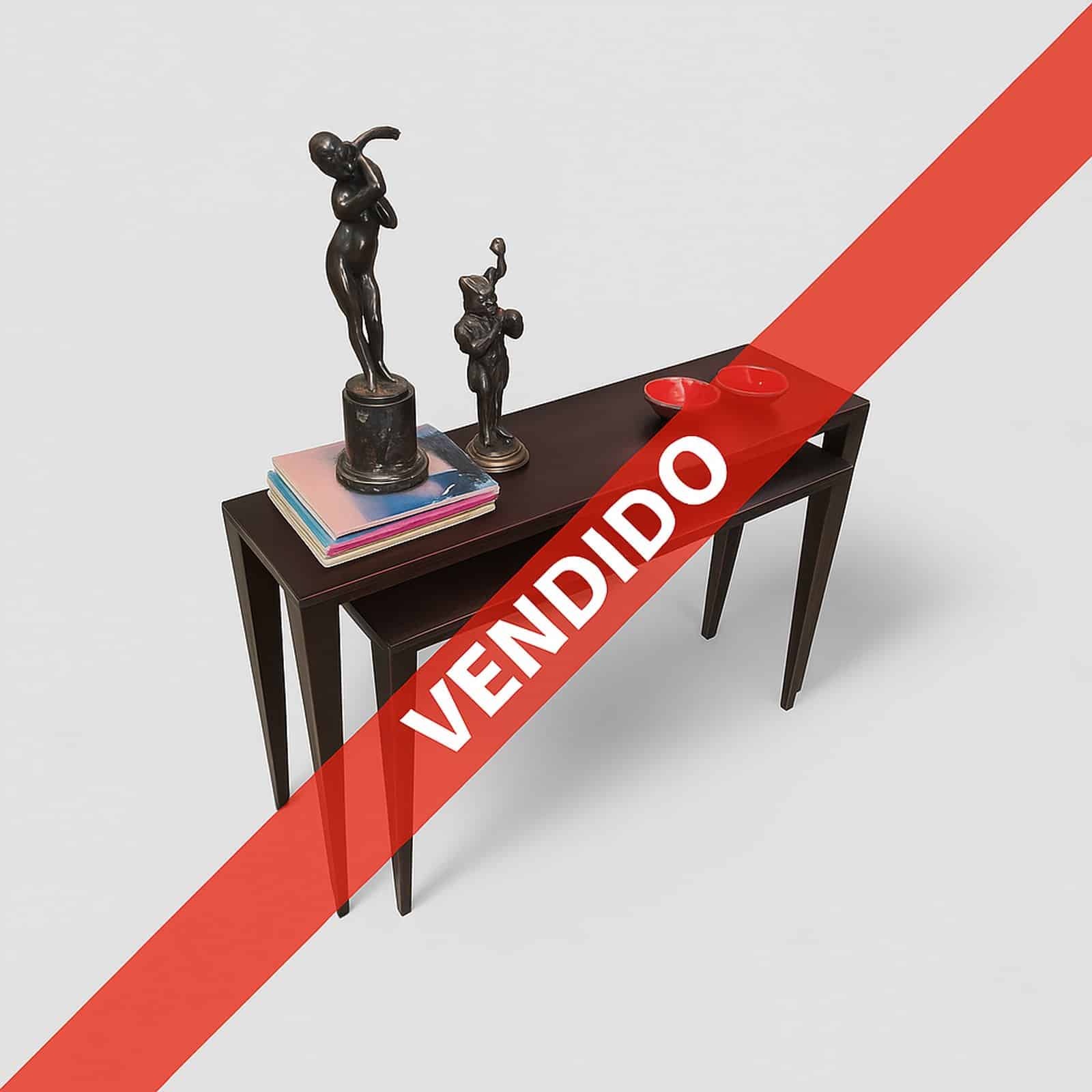 Dos consolas, una sobre otra, en chapa de hierro pintada al horno.