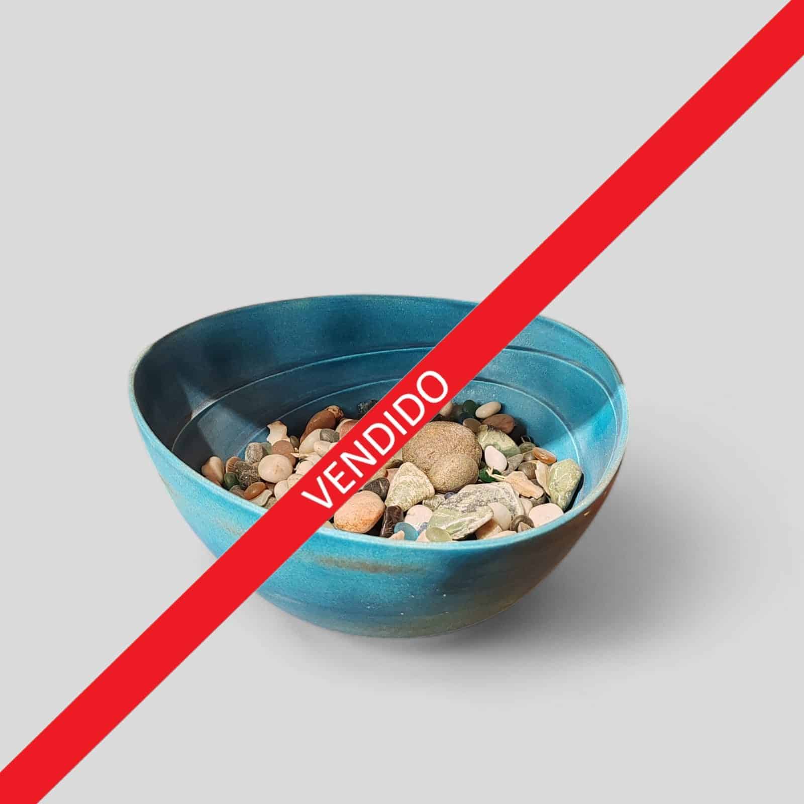 En cerámica, recubierto de esmalte color turquesa. De forma irregular.