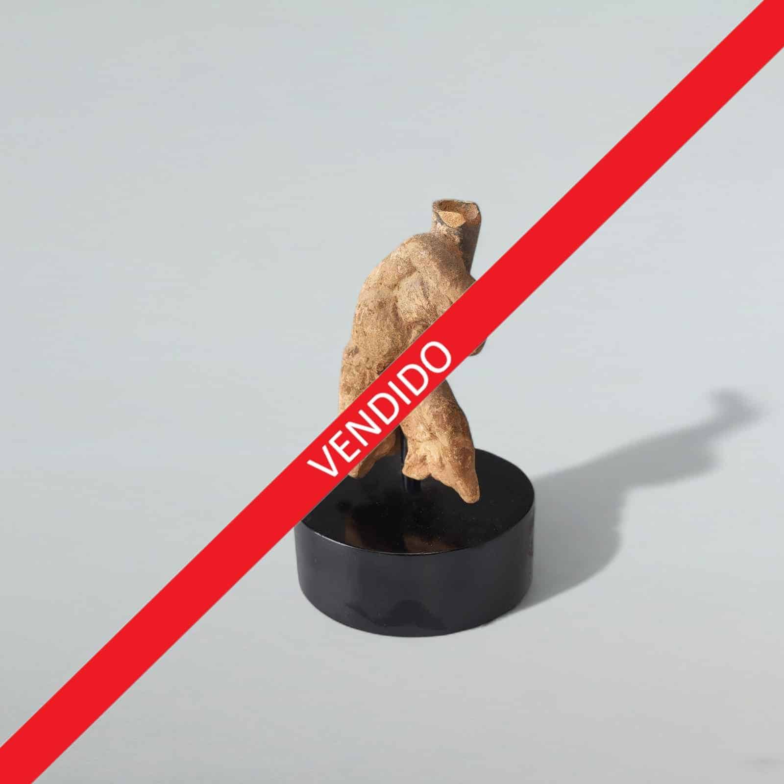 Tanagra representando a Hércules encadenado, sobre una base de madera ebanizada.