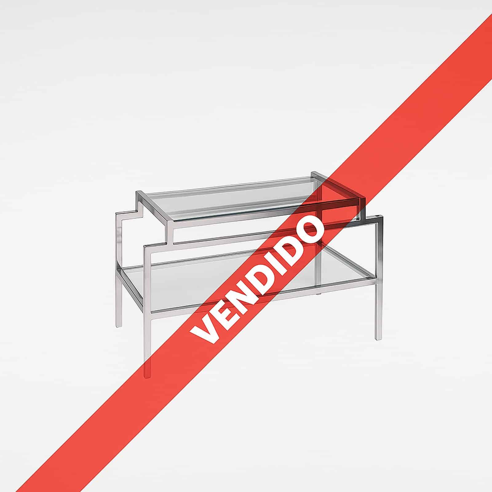 Mesa para costado de sofá en hierro cromado y vidrio.